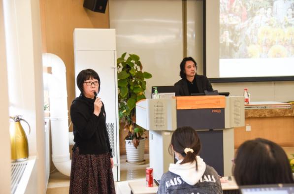 最后,白巍老师在评议发言中谈到,马刚教授精彩的讲座,带我们走进了一个激情澎湃的时代。一幅画就是一段历史,图像记录的是社会生活,与政治、经济、文化发展密不可分。陆机说:“宣物莫大于言,存形莫善于画”,以图证史,可以让人更好地了解历史。讲座也为我们研究当代艺术提供了一个很好的视角。主题创作是中国当代美术创作的一个重要现象,是一个值得艺术史研究者关注的问题,艺术史人既是研究者,又应做文化、文明的担当者、推动者。从不同层次解读图像的意义、研究其特定主题,都是图像研究和艺术史研究的内容。它揭示着一个时代的政治、经济、文化的发展,揭示着人类文明的进步。艺术是一个民族的文化密码,是人对生命最深刻的人文关照。生活在当下的我们,可以通过主题性创作回看历史,更能真正体会艺术之精神。