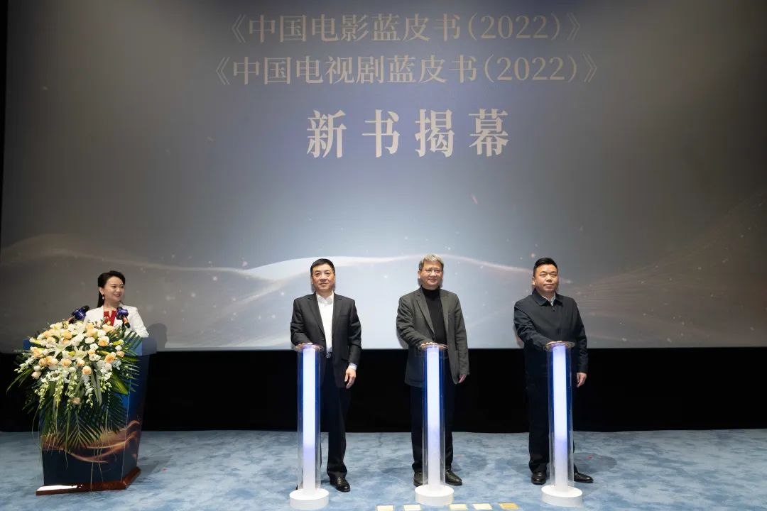 五年整装再出发!新年迎未来!《中国电影蓝皮书(2022)》《中国电视剧蓝皮书(2022)》首发式 2023年1月1日上午,《中国电影蓝皮书(2022)》《中国电视剧蓝皮书(2022)》于第九届丝绸之路国际电影节西影特别单元——西部电影周举行首发式。陕西省广播电视局副局长韩棚格、西影集团总经理黄献松、北京大学艺术学院教授/《蓝皮书》主编之一陈旭光教授共同为新书揭幕。