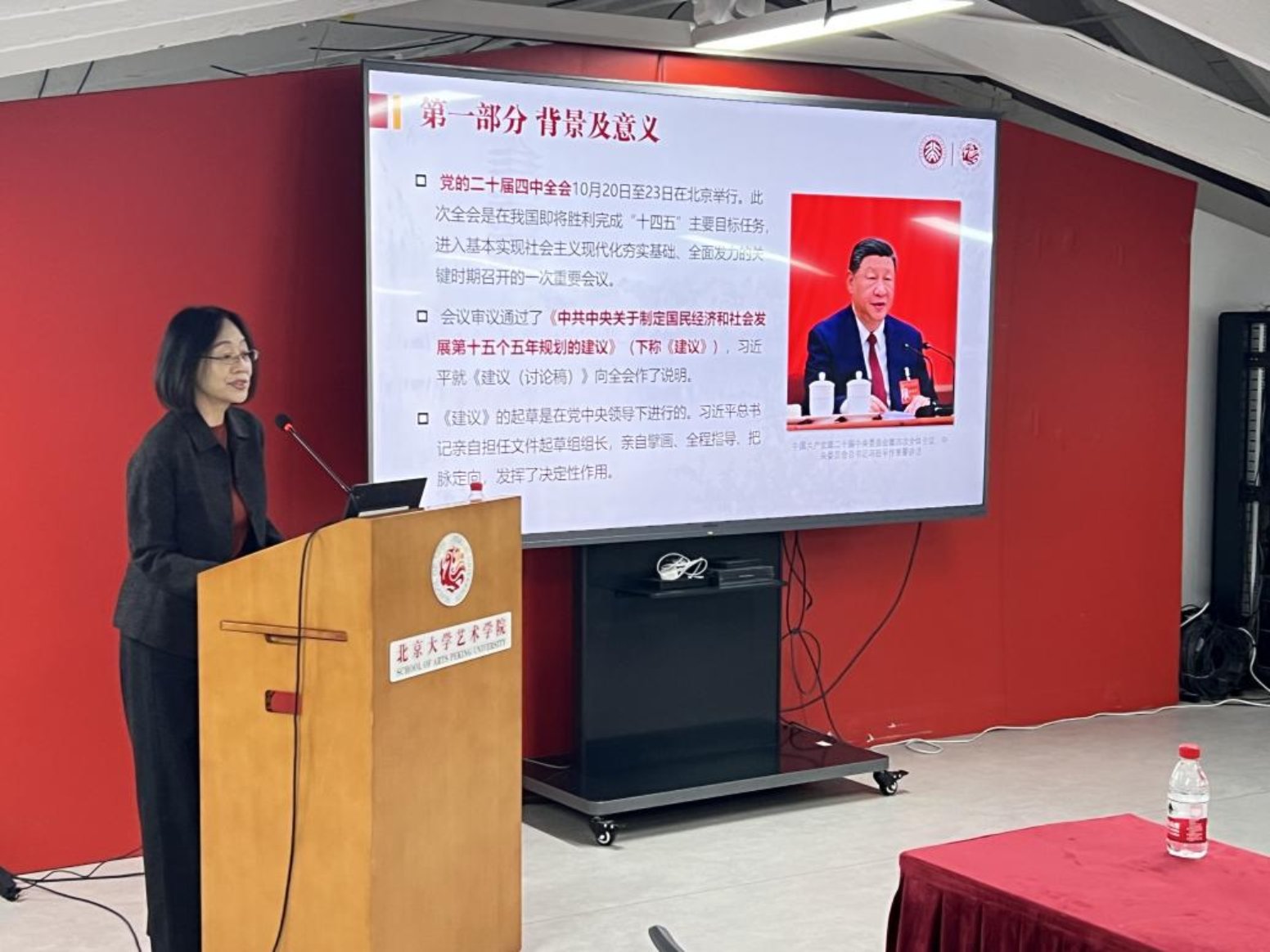 会上,雷虹带领全体教职工系统学习全会核心精神,重点聚焦《中共中央关于制定国民经济和社会发展第十五个五年规划的建议》的三大板块、15个部分及61条具体内容,认真学习领会了“十四五”时期我国发展取得的重大成就、“十五五”时期经济社会发展必须坚持的指导思想和要求以及必须遵循的6个原则和12项重大部署,进一步明确了到二〇三五年基本实现社会主义现代化的远景目标。全体教职工深入学习领会全会精神的核心要义,紧扣《建议》中高水平科技自立自强、繁荣发展社会主义文化等重点部署,结合艺术学学科特色,就如何将全会精神融入人才培养、学术研究、社会服务等工作展开深入探讨。